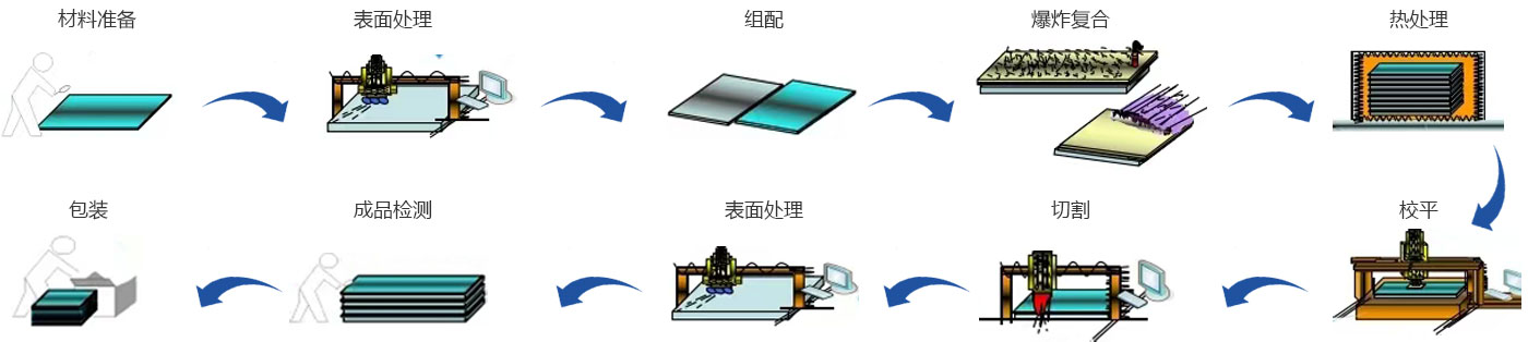 不銹鋼復合板爆炸復合的生產方法。 爆炸復合是將不銹鋼板重疊置于碳鋼基板上,不銹鋼板和碳鋼基板之間用墊子間隔出一定的距離,在不銹鋼板上面平鋪炸藥,炸藥爆炸的能量使不銹鋼板高速撞擊碳鋼基板,產生高溫高壓使兩種材料的界面實現固相結合。 不銹鋼復合板是以碳鋼基層與不銹鋼覆層結合而成的復合板鋼板。它的主要特點是碳鋼和不銹鋼形成牢固的冶金結合,可以進行熱壓、冷彎、切割、焊接等各種加工,有良好的工藝性能。不銹鋼復合板的基層材料可以使用Q235B、Q245R、Q345B,Q345R等各種普通碳素鋼和專用鋼。覆層材料可以使用304、316L、321和雙相不銹鋼等各種牌號的不銹鋼。材質和厚度可以自由組合,滿足不同用戶的需要。不銹鋼復合板已經廣泛應用于石油、化工、鹽業、水利電力等行業。不銹鋼復合板作為一種資源節約型的產品,減少貴重金屬的消耗,大幅度降低工程造價。實現低成本和高性能的***結合,有良好的社會效益?! 〔讳P鋼復合板是怎樣生產的呢?不銹鋼復合板工業化生產主要有兩種方法,爆炸復合和熱軋復合。爆炸復合板的生產工藝是將不銹鋼板重疊置于碳鋼基板上,不銹鋼板和碳鋼基板之間用墊子間隔出一定的距離。不銹鋼板上面平鋪炸藥,炸藥爆炸的能量,使不銹鋼板高速撞擊碳鋼基板,產生高溫高壓使兩種材料的界面實現固相焊接。理想狀態下,界面的每平方毫米的剪切強度可以達到400MPa以上。熱軋復合板工藝是以碳鋼基板和不銹鋼板處于物理純凈狀態,在高度真空條件下進行軋制而成。在軋制過程中兩種金屬擴散實現完全的冶金結合。但是不能解決10mm以上金屬的復合,這種焊接只具有壓軋焊接的特點,不像爆炸焊接融合了壓力焊、熔化焊、和擴散焊的特點,爆炸焊為不同基體金屬的結合提供了更多和更好的條件。正因為如此,同種和異種金屬都可以爆炸焊接以上兩種復合板制造方法都執行GB/T-8165-1977國家標準。該標準非等效采用日本JISG3601-1990標準,主要技術指標相同或高于日本標準?! ∧敲幢◤秃瞎に囂攸c如何呢?爆炸復合的特點:一、由于爆炸復合是冷加工,因此它可以產生100多種金屬復合板,如鈦、銅、鋁等等。二、爆炸復合可以生產不銹鋼復合板總厚度可以達到幾百毫米厚的不銹鋼復合板,不銹鋼復合板兼具各種碳素鋼和不銹鋼的特點,以其優異的性能價格比為用戶歡迎,有廣闊的市場前景。但有趣的是,從五十年代開始,經過半個多世紀風風雨雨的開發過程,仍然有很多人不知道它。更多的人未使用過它。應該說不銹鋼復合板的市場遠未進入成熟期,仍在開發過程中。科技工作者為建設資源節約型社會的探索和努力永遠不會停止。洛陽京久金屬復合材料有限公司致力于各種金屬爆炸復合材料的研究與開發生產,永不停歇的努力滿足社會發展對金屬復合材料的需求。